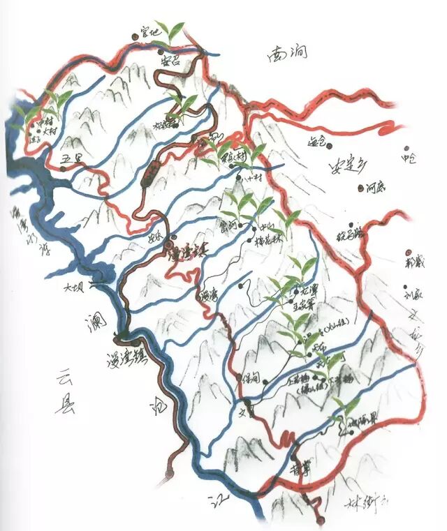 東西約150千米的范圍內(nèi)有元江、川河、瀾滄江、怒江。四大河流從北向南或從西北向東南流經(jīng)上述四大山脈,并成為上述四大山脈的分界河,《云南山頭茶探秘》就是按照這四大山脈水系來分別闡述云南古茶樹的資源狀況。無量山主脈東坡山頭茶