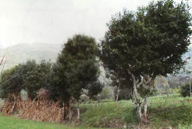 公郎山頭茶主要分布在南澗的公郎鎮(zhèn)官地村。古茶樹多生長于坡地的田坎邊和村民房屋周邊,零散的植株多為放養(yǎng)型,樹形較高大,部分連片的古茶園均被矮化,樹齡多在100~200年,其中最大的植株生長在小水井小組,樹齡約800年。